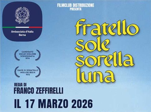 L’Ambasciata d’Italia a Berna informa che, in occasione del 165º Anniversario dell’Unità d’Italia e dell’avvio delle celebrazioni dell’ottavo centenario della morte di San Francesco d’Assisi, Patrono d’Italia, martedì 17 marzo 2026 alle ore 20,00 verrà presentato presso i Cinema Pathé di Zurigo, Berna, Ginevra e Losanna ed il Cinema Arena di Lugano il film «fratello sole sorella luna» di Franco Zeffirelli.